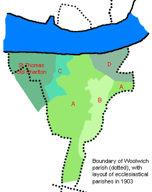 - St Michael & All Angels: Borgard Rd. (map ref C) Church built 1875; parish created 1879 from Woolwich St Mary. No information on registers
